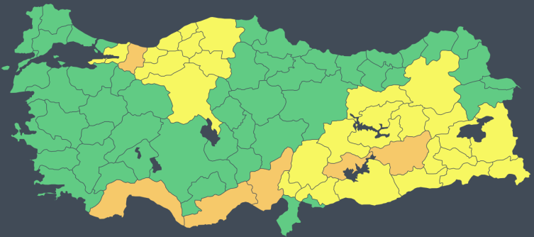 36 İL İÇİN SARI VE TURUNCU KODLU UYARI