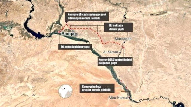 Rakka’yı ABD ile PKK korumasıyla terk eden DEAŞ’ın konvoyunun izlediği rota da böyle görüntülendi.