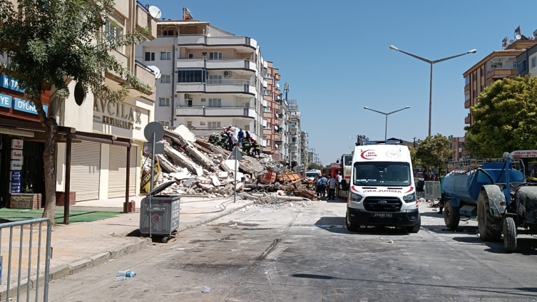 Binanın enkazı altında iş makinesiyle kalan operatörü kurtarmak için AFAD ve Gaziantep Büyükşehir Belediyesi itfaiye ekiplerince çalışma başlatıldı.