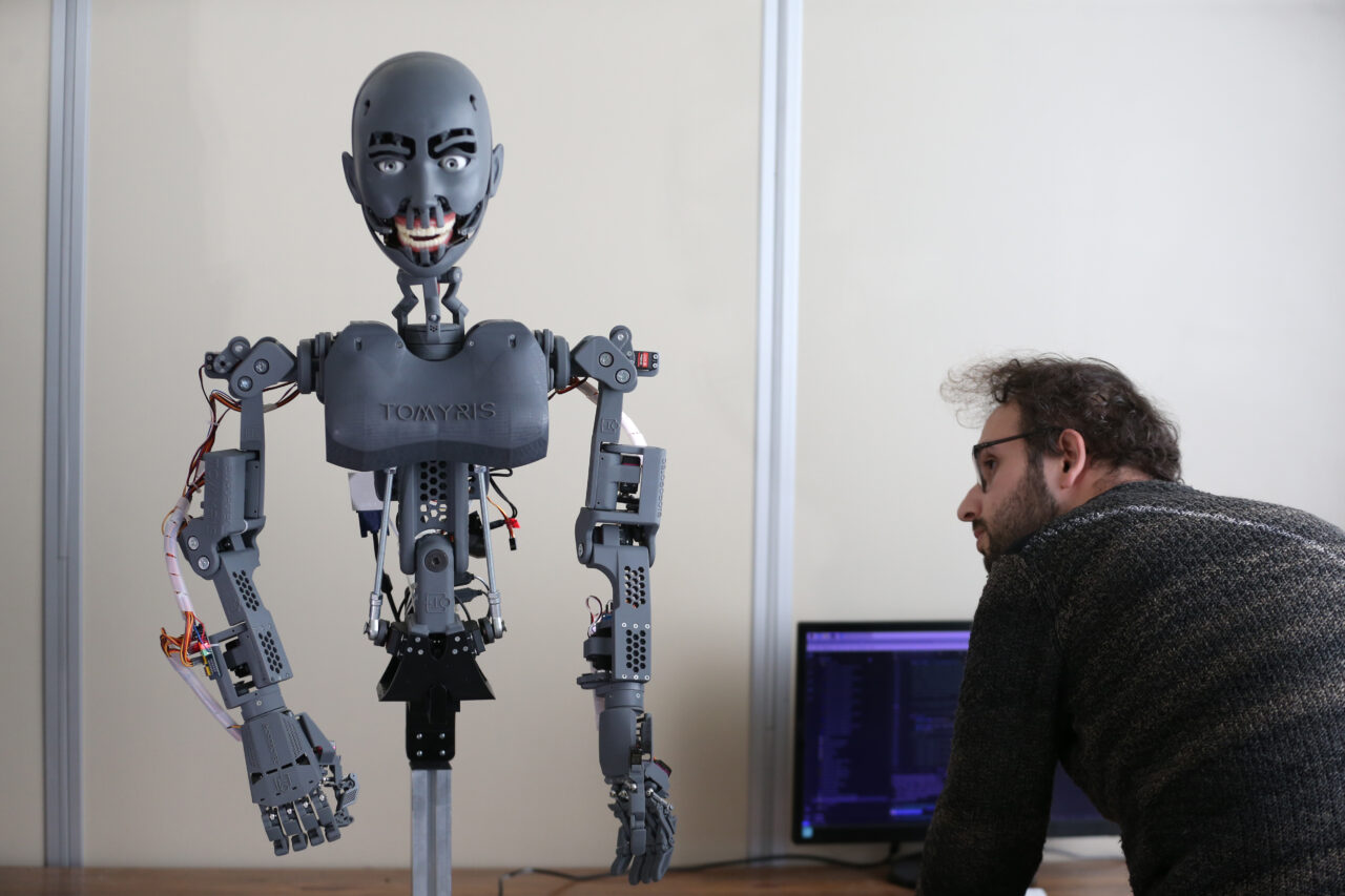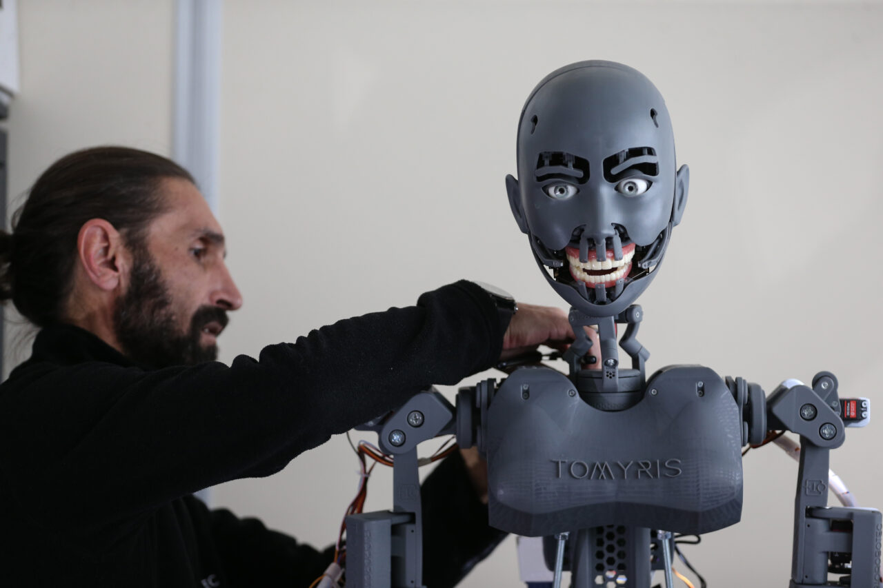 Yüzündeki geliştirmeler sayesinde 9 farklı duyguyu mimiklerle gösterebilen Tomyris’in, yapay zekayla görüntü işleme, dil, duygu çözümleme, sorulara yanıt verebilme gibi beceriler kazanması için çalışılıyor.