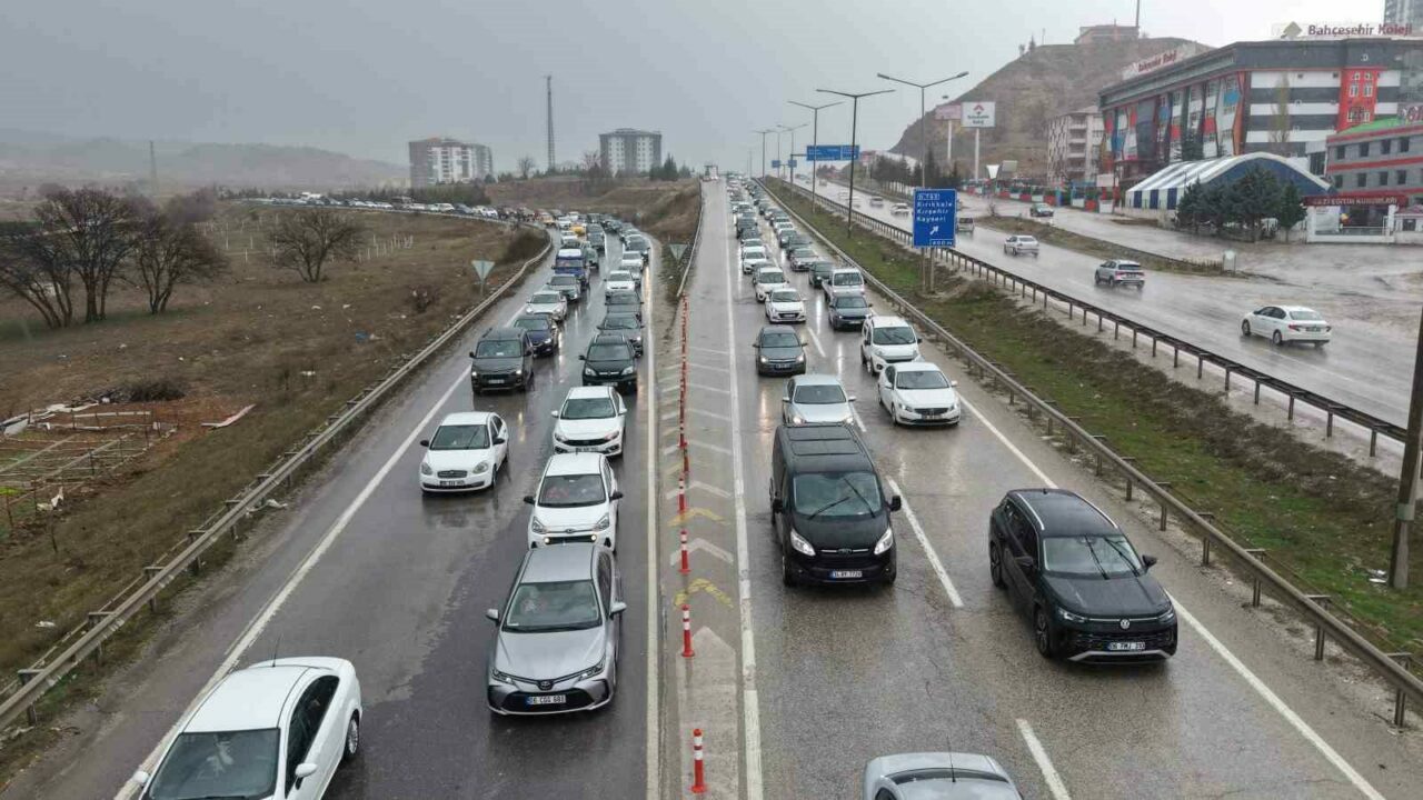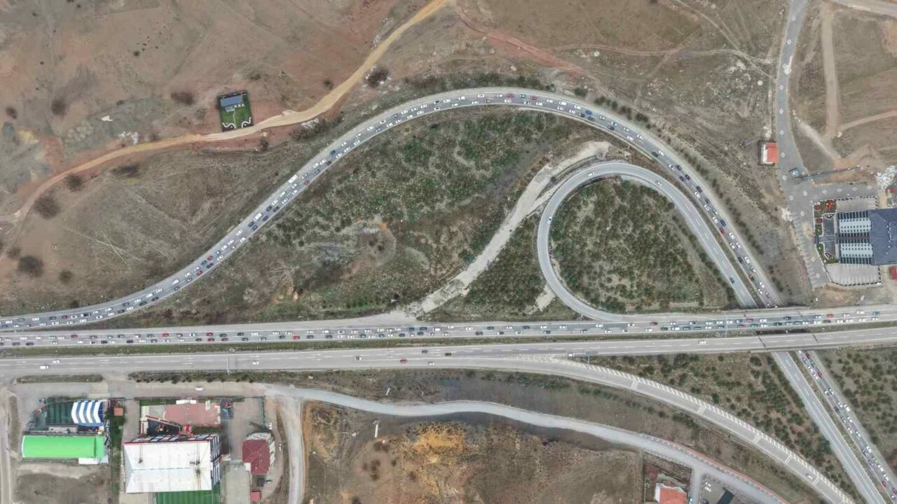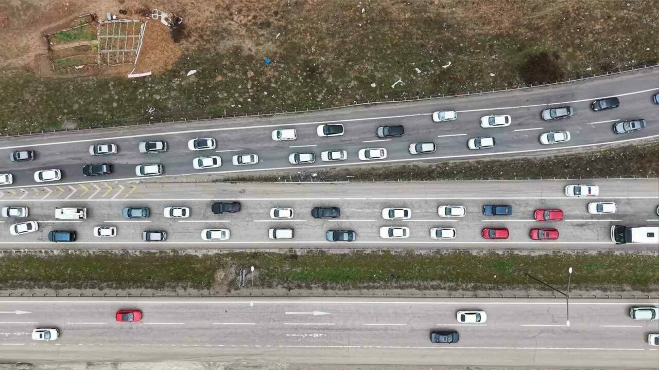 Ana güzergahlarda trafik akışı yer yer yavaşlarken, uzun araç kuyrukları oluştu. Yoğunluk havadan da görüntülendi.