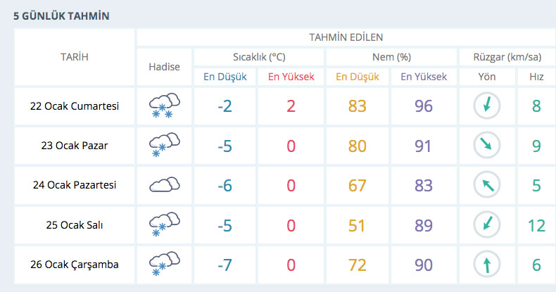 Samsun: Çok bulutlu, karla karışık yağmur ve zamanla kar yağışlı (Yağışların kuvvetli ve yer yer yoğun kar şeklinde olması bekleniyor) 6