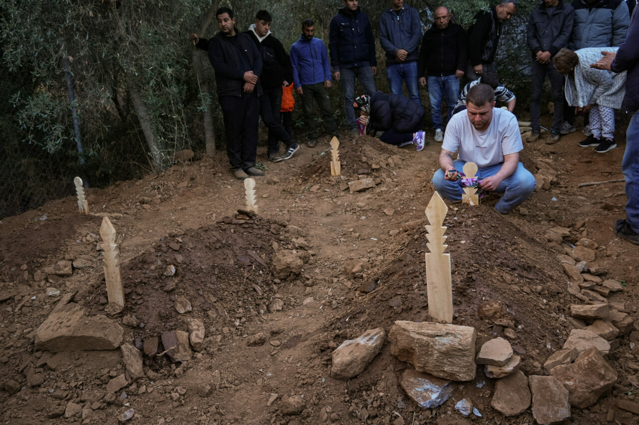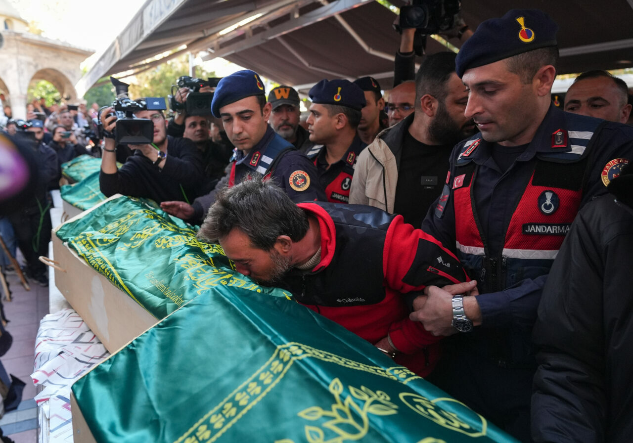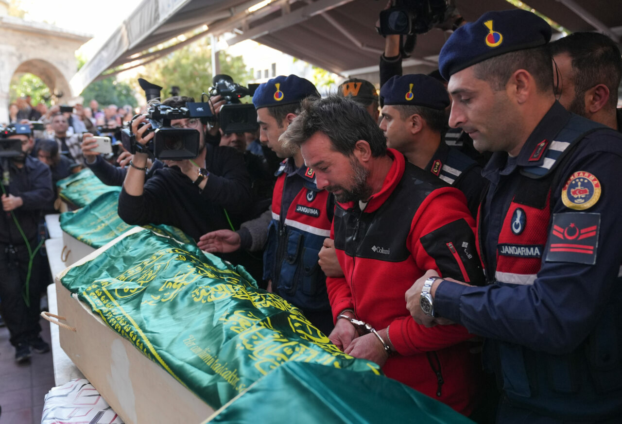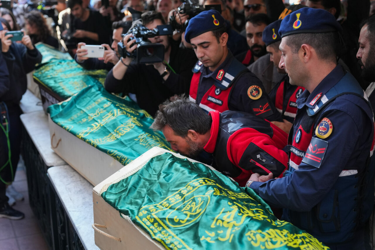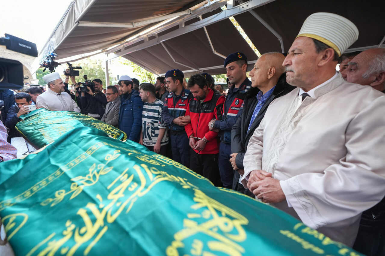 Torbalı Açık Cezaevinden getirilen baba Hakan Akcan, cenaze törenine jandarma ekiplerinin aldığı güvenlik önlemleri altında katıldı. Baba Akcan, çocuklarının tek tek öptüğü tabutlarına başını koydu. İkindi sonrası kılınan cenaze namazı sırasında jandarma ekipleri babanın bileklerindeki kelepçeleri çıkardı.
