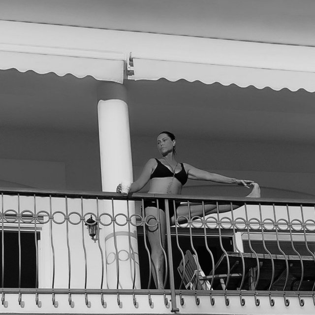 Hülya Avşar, balkonda açma-germe hareketi yaptığı anları takipçileriyle paylaştı.
