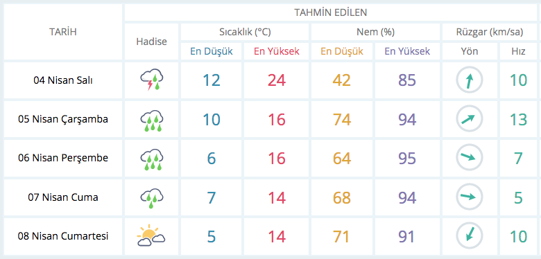 Rüzgarın; bugün İç Ege, İç Anadolu Bölgesi, Batı ve Orta Akdeniz ile Karadeniz’in iç kesimlerinde güney ve güneybatı (lodos) yönlerden kuvvetli yer yer fırtına, Burdur, Isparta, Antalya’nın iç kesimleri, Afyonkarahisar, Konya, Karaman, Niğde ve Kayseri çevrelerinde kuvvetli fırtına, yüksek kesimlerinde hamleli tam fırtına şeklinde eseceği tahmin ediliyor.