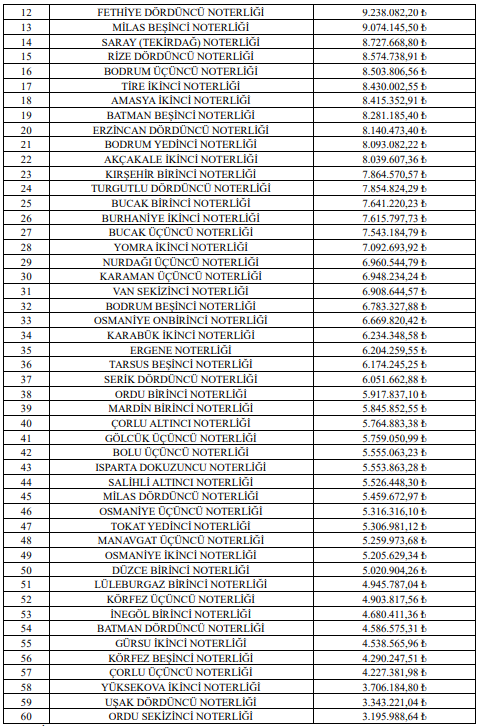 162 adet boşta olan noter için başvuruların Adalet Bakanlığı’na yapılması gerekiyor. Bunlar arasında en yüksek kazanca sahip olan noter ise 66 milyonluk geliriyle Beşiktaş 26’ncı Noterliği oldu.