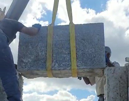 Yerinden çıkartılarak konservatör uzmanı tarafından temizliği yapılan kitabe vinç yardımı ile yerine tekrar yerine konuldu.