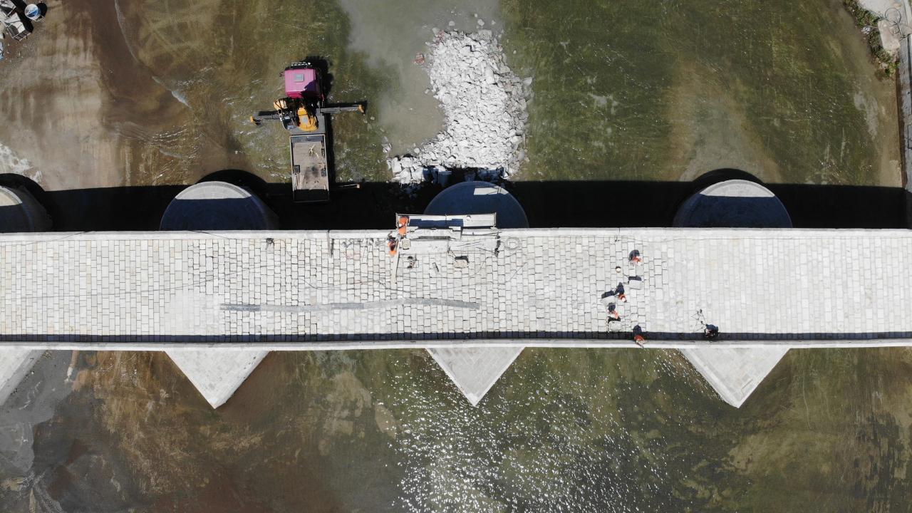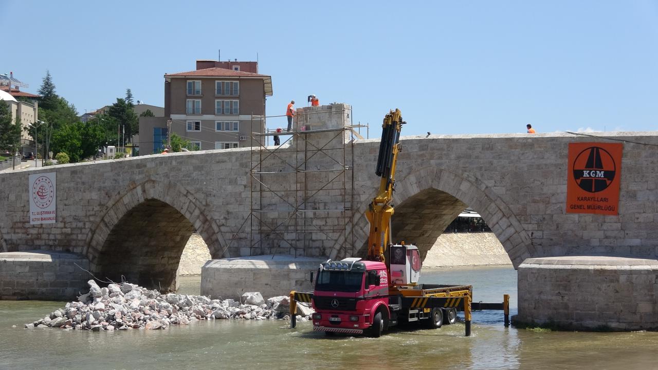 Köprünün orijinal taşlarının bulunmadığı bölümlere ise Afyonkarahisar’dan getirtilen traverter taşlar yerleştirildi.