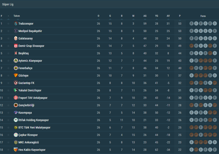 İşte Süper Lig’de 27. hafta maçlarının programı: