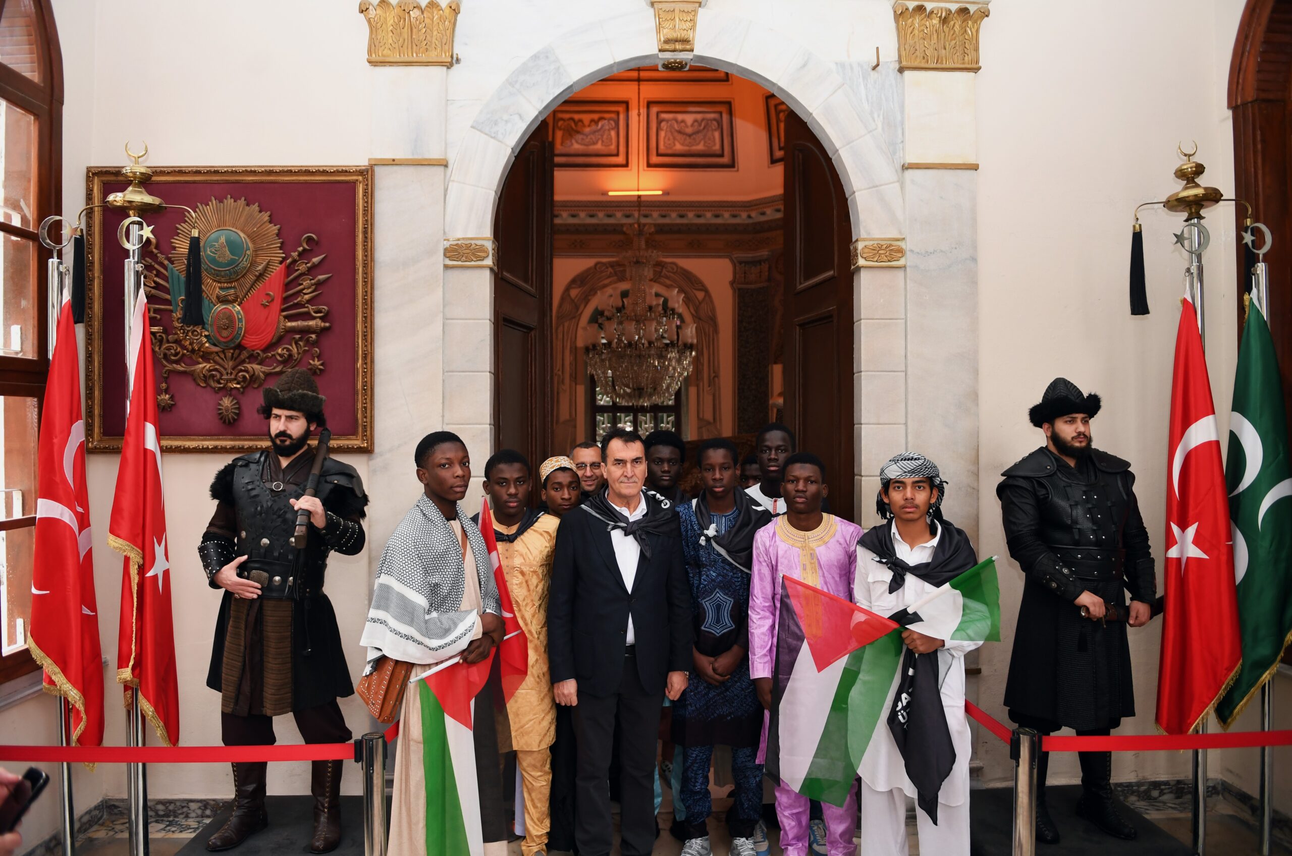 Ülkelerine ait yöresel kıyafetlerini giyen çok sayıda öğrenci, Tophane Meydanı’ndaki Osman Gazi Türbesi önünde bir araya geldi.