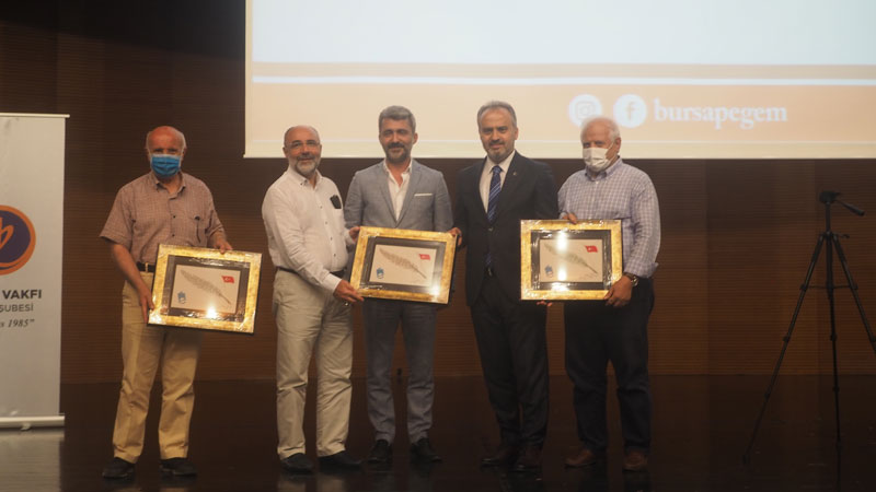 Festivale katılan Bursa Büyükşehir Belediye Başkanı Alinur Aktaş ve Birlik Vakfı Bursa şubesi başkanı Mustafa Bayraktar konuşmalarıyla gençleri motive ediyor.