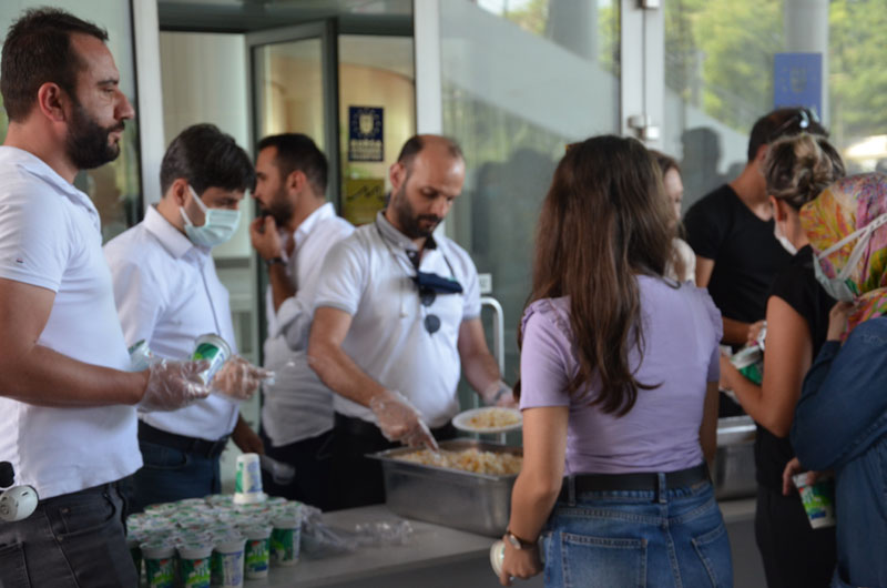 1400 öğretmen adayının katıldığı programda yemek, dondurma, meşrubat ve meyve ikramları veriliyor.