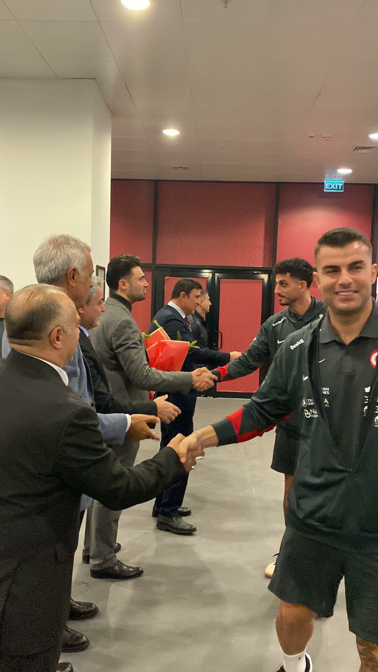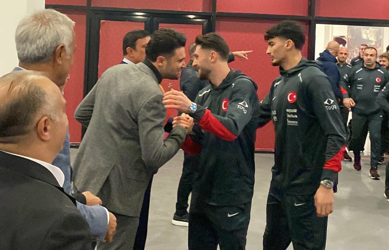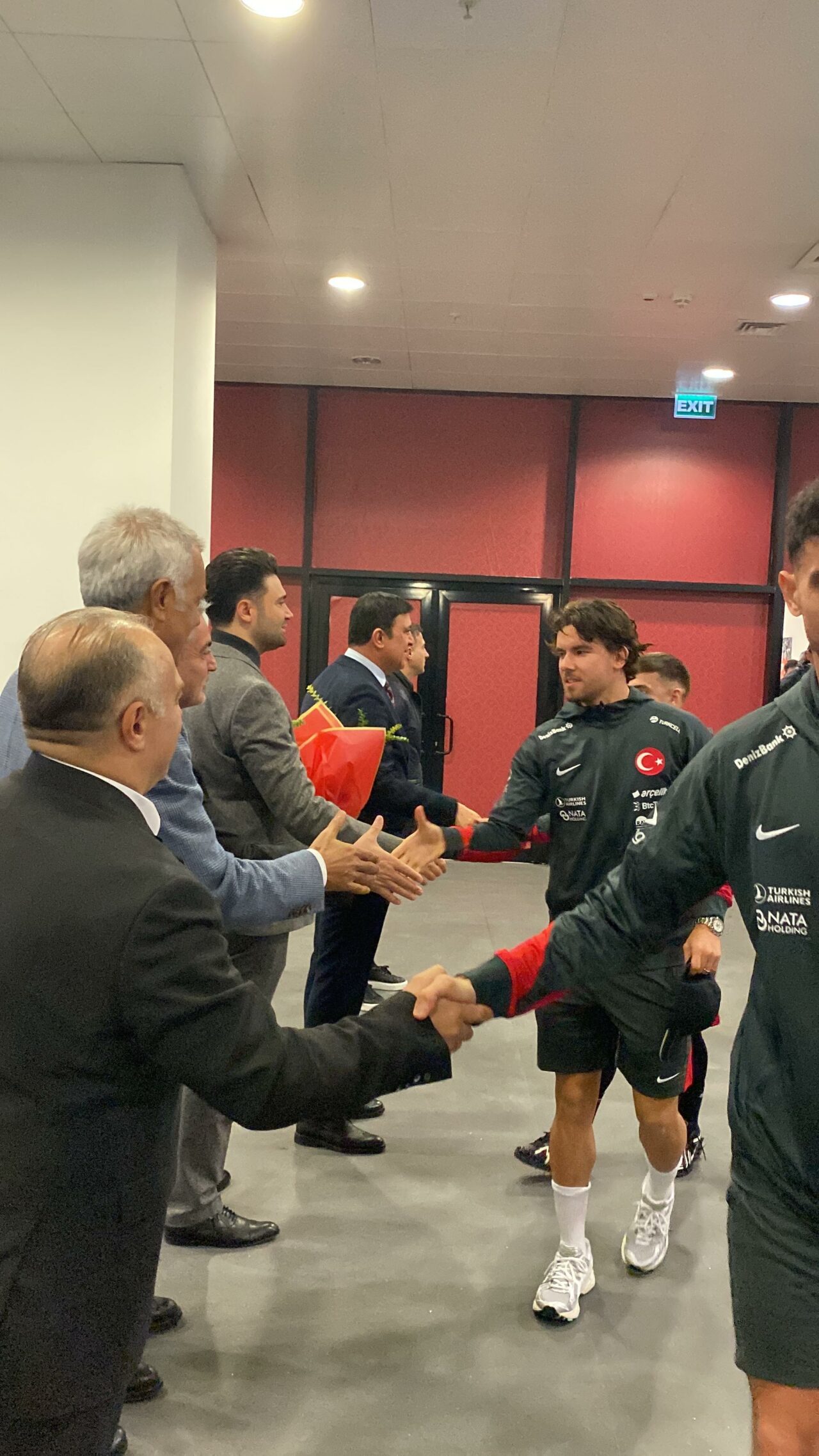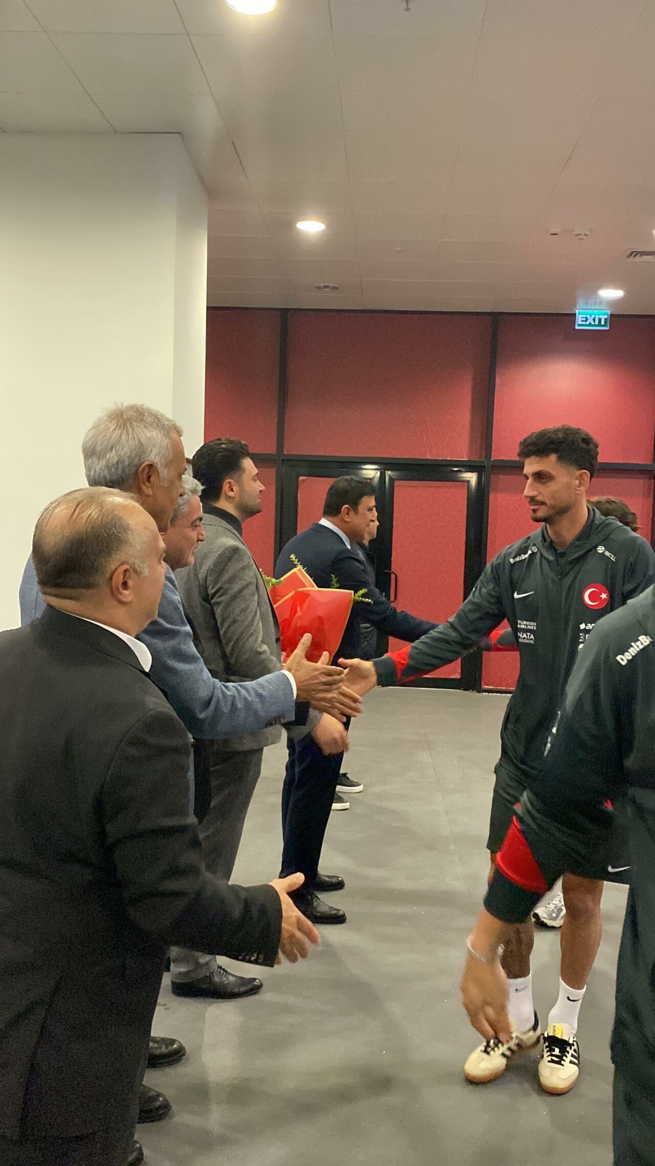 Ay yıldızlı kafileyi karşılayanlar arasında Bursaspor Başkanı Enes Çelik de vardı.