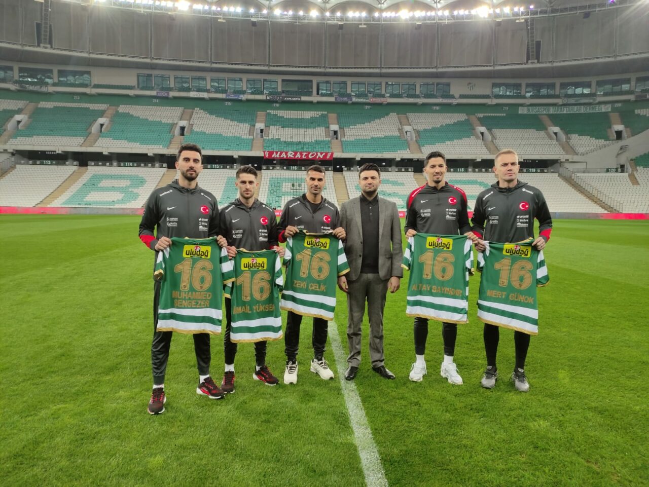 Başkan Çelik, bir dönem yeşil beyazlı takımda görev yapan Milli futbolcular Muhammed Şengezer, İsmail Yüksek, Zeki Çelik, Altay Bayındır ve Mert Günok’a Bursaspor forması hediye etti.