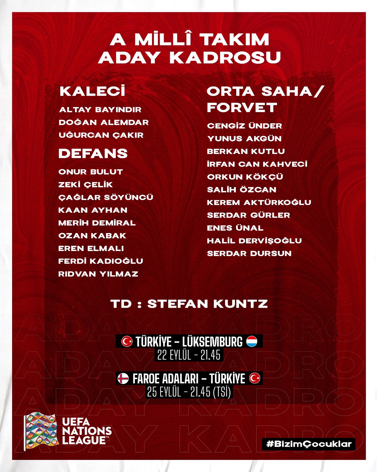 A Milli Takımımızın, 2022/23 UEFA Uluslar C Ligi 1. Grup’ta oynayacağı maçların aday kadrosu açıklandı.