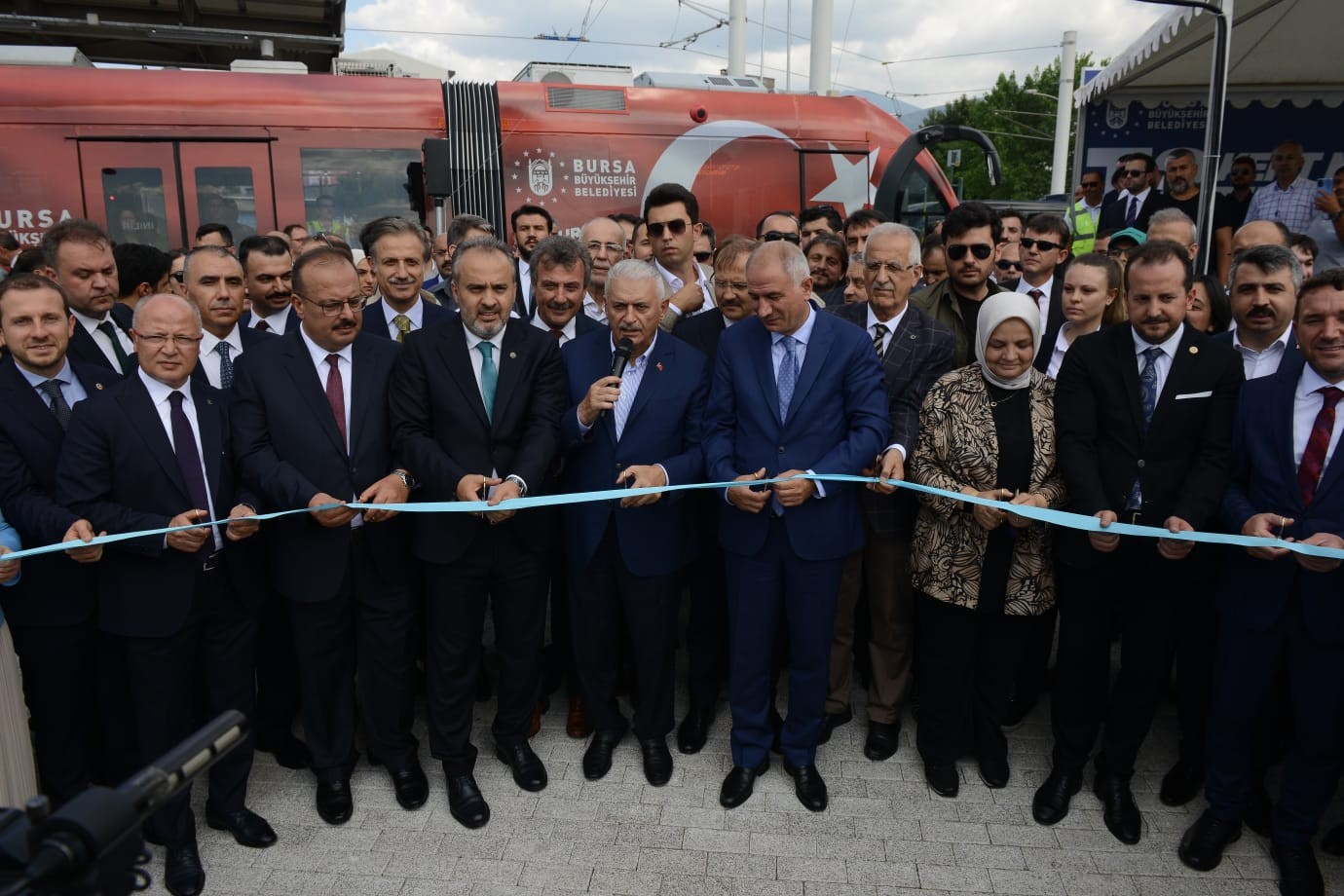 AK Parti Grup Başkanvekili Binali Yıldırım ise şunları söyledi: “Cumhurbaşkanımız bugün Bursa’da olacaktı. Başka gün sizlerle olacak. Bursa’ya beni gönderdi. Bursa’ya bugün ulaşımda yeni imkanlar sağlayacak, insanlarımızın hayatını kolaylaştıracak bu gördüğünüz raylı sistemi açıyoruz. Şehir merkezinden terminale kadar 11 istasyonla, doğrudan trafiğe takılmadan gideceğiz. Başlangıçta test ettik, konforlu ve emniyetli olduğunu gördük.