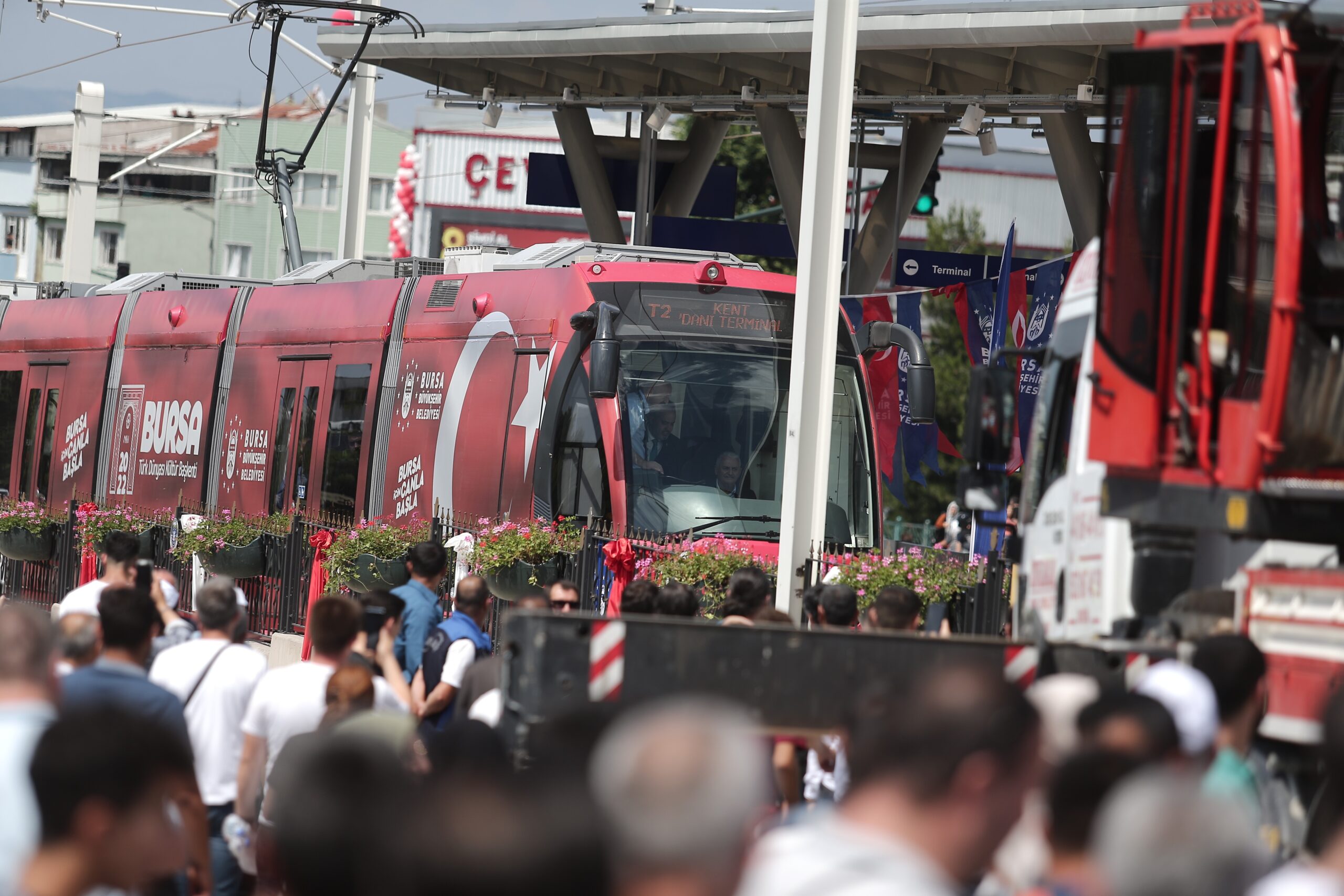 Bursa Büyükşehir Belediyesi tarafından inşa edilen Kent Meydanı – Terminal arasındaki 9 bin 445 metrelik 11 hattan oluşan T2 tramvay hattı hizmete açıldı. T1 hattı ile entegre çalışacak olan T2 hattı bir hafta Bursalılara ücretsiz olacak. Yeni hatla birlikte Bursa’daki 47 kilometre olan raylı sistem hattı 56,5 kilometreye çıkmış oldu.