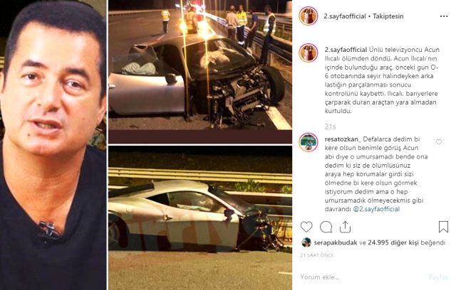 “Acun Ilıcalı’nın kalbinde beni hissetmesi için ne yapmam gerekiyor” diyerek gündeme gelen genç adam Ilıcalı’nın kaza haberinin altına ” Defalarca dedim bir kere olsun benimle görüş Acun abi diye, o umursamadı. Ben de ona dedim ki ‘Siz de ölümlüsünüz araya hep korumalar girdi sizi ölmeden bir kere olsun görmek istiyorum’ dedim ama o hep umursamadı, ölmeyecekmiş gibi davrandı” notu sosyal medyaya damga vurdu.