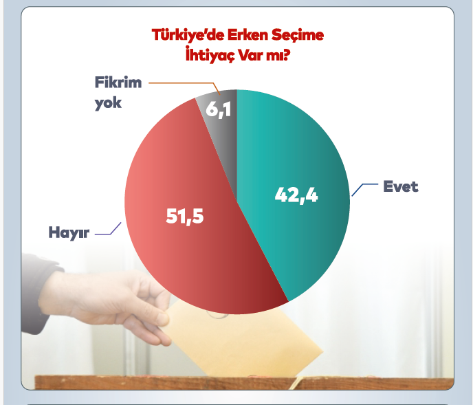 Yüzde 51.5 hayır cevabı verirken, yüzde 42.4 evet demiş. Yüzde 6.1’in de fikri yok.
