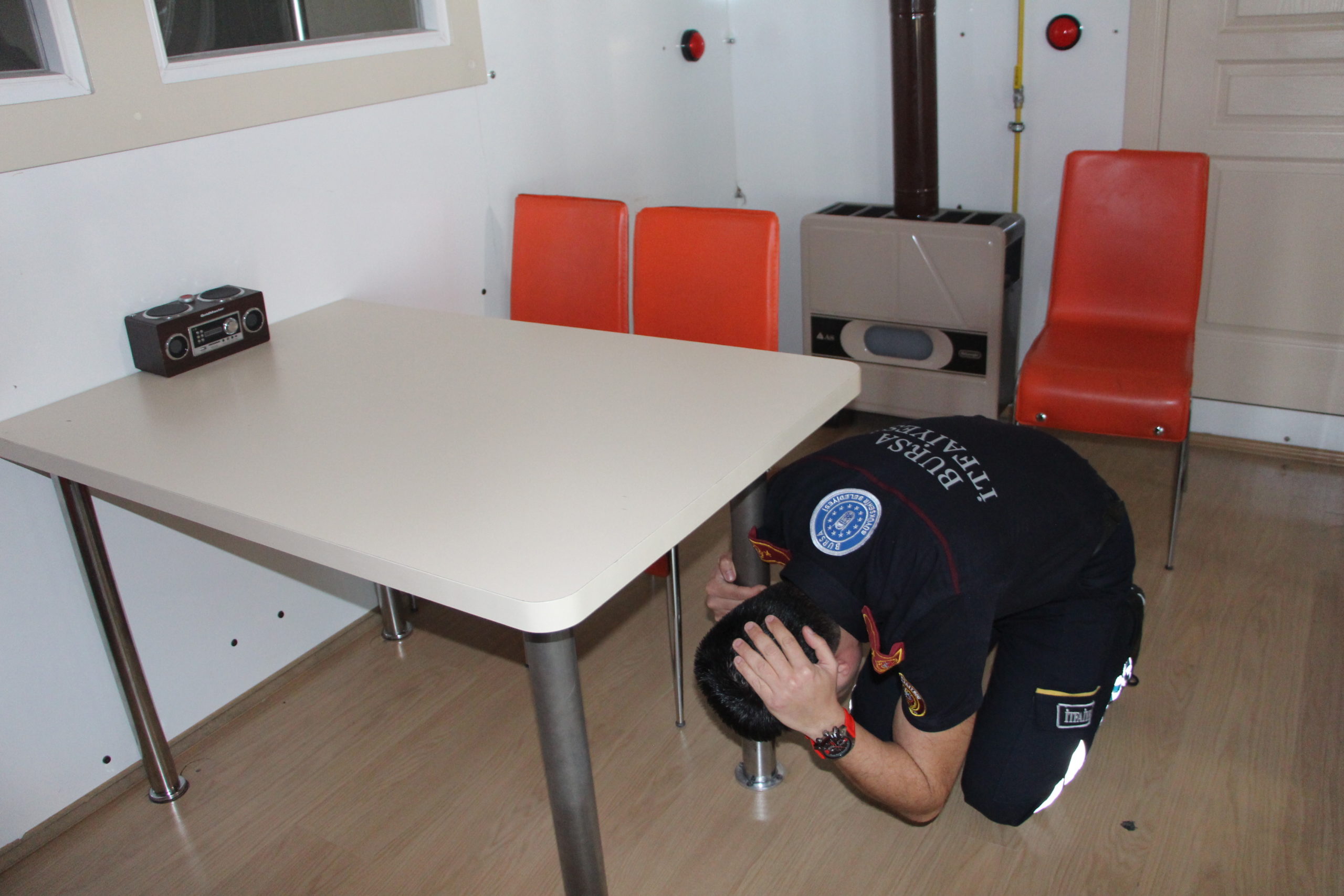 Afet esnasındaki doğru davranışların hayata tutunmayı sağlayacağını söyleyen Yiğit, “Deprem olduğunda kaçma kültürünü artık hayatımızdan çıkarmak gerekir. Birleşmiş Milletler doğru davranışın ‘çök kapan tutun’ olduğunu tescilledi. Bu davranışı artık uygulamamız gerekiyor. Sarstıtıyı hissettiğimizde depremin nereye evrileceğini bilmiyoruz. Eğer deprem 5 büyüklüğünün altında kalır ise insanoğlu hareket edebilir. Fakat deprem, 5 büyüklüğünün üzerine çıkarsa hareket kabileyitimizi kaybedeceğiz. Onun için daha önceden tatbikatlar yaparak durumu içselleştirmemiz lazım. Koruyacağını inandığımız bir eşyanın yanında çök kapan tutun yaparak üzerimize düşecek eşyalardan ya da tavandan korunmak için hedef küçültmemiz gerekiyor” diye konuştu.