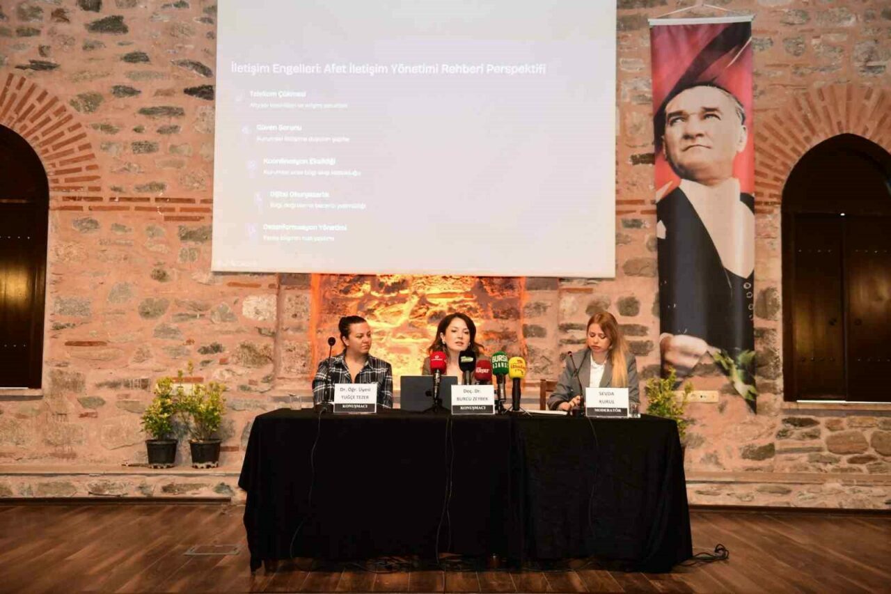 Ördekli Kültür Merkezi’nde Sevda Kurul’un moderatörlüğünde düzenlenen programda, alanında uzman isimler bilgi ve deneyimlerini katılımcılarla paylaştı. Doç. Dr. Burcu Zeybek, “Afet ve Deprem Sürecinde İletişim ve Dezenformasyon” başlıklı sunumuyla, kriz anlarında doğru bilginin hayati önemini vurguladı. Dijital çağda yanlış bilginin yayılma hızına dikkat çeken Zeybek, sağlıklı iletişim stratejilerinin toplumun psikolojik dayanıklılığı üzerindeki etkilerini çarpıcı örneklerle aktardı.