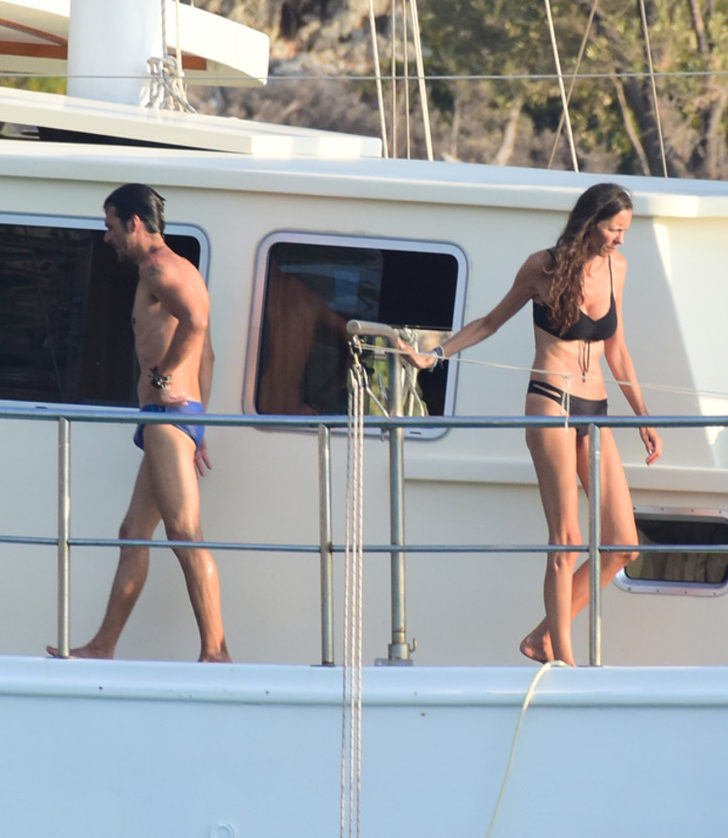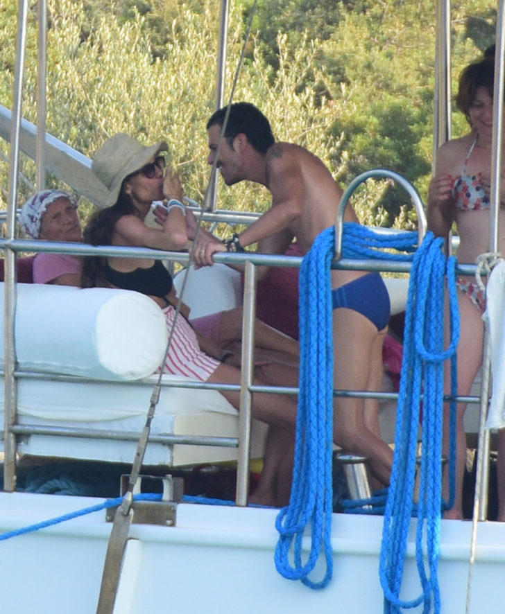 Ünlü oyuncunun tekne üzerindeki merdivenlerde yaptığı dans objektife böyle yansıdı. Teknede çiftin dostlarının yanı sıra anneleri de vardı.