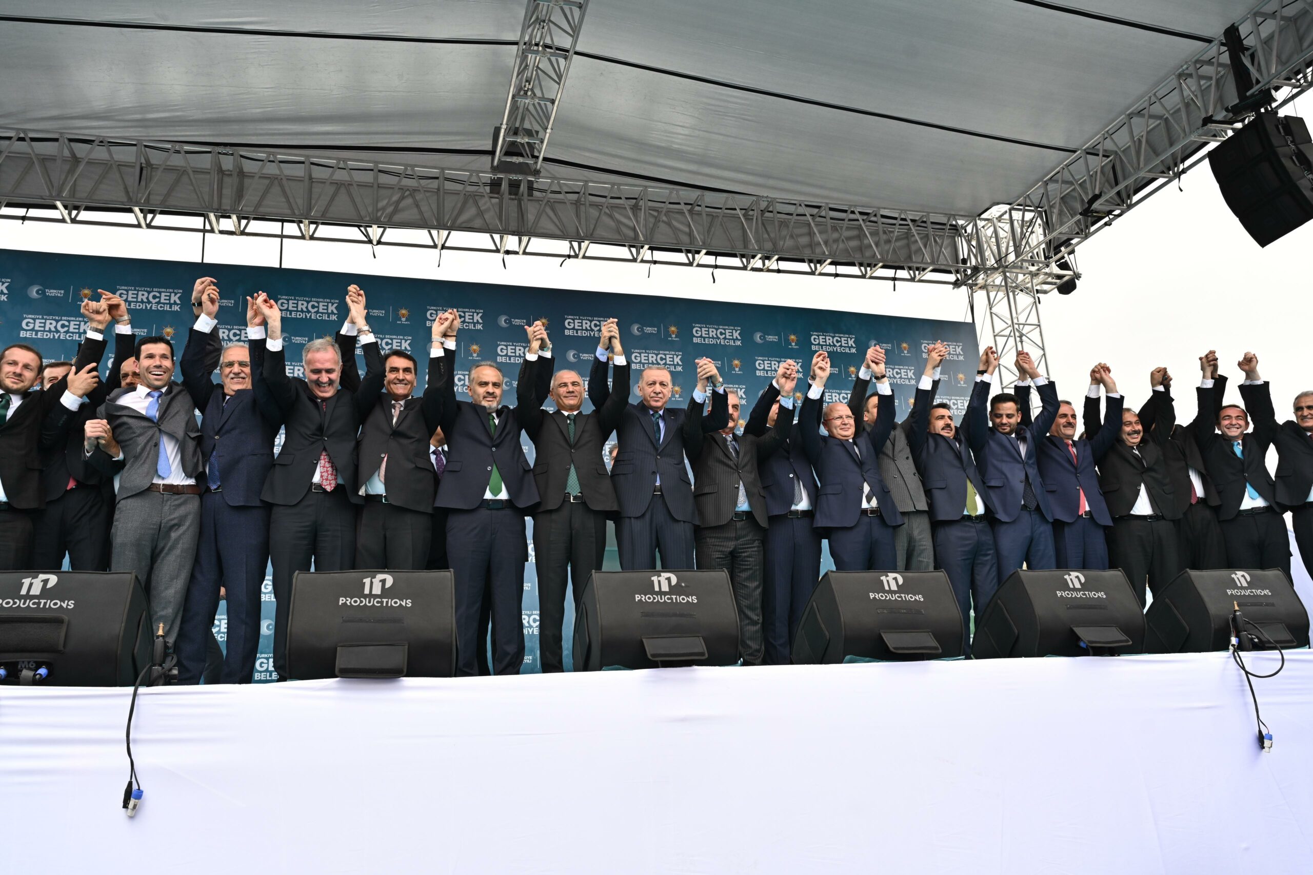 Konuşmaların sonunda Cumhurbaşkanı Erdoğan, Bursalılarla birlikte ‘Duyanlara duymayanlara’ şarkısını söyledi. Erdoğan, buluşmanın finalinde Bursa Büyükşehir Belediye Başkanı ve Başkan adayı Alinur Aktaş, AK Parti İl Başkanı Davut Gürkan, MHP İl Başkanı Muhammet Tekin, milletvekilleri ve belediye başkan adayları ile bir araya gelip hatıra fotoğrafı çektirdi.