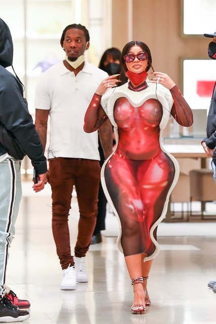 Lüks yaşantısı, paylaşımları ve giyim tarzıyla gündemden düşmeyen Amerikalı şarkıcı Cardi B., önceki gün rapçi eşi Offset ile Beverly Hills’de objektiflere takıldı. 28 yaşındaki şarkıcı, ilginç kıyafetiyle yine dikkat çekti.