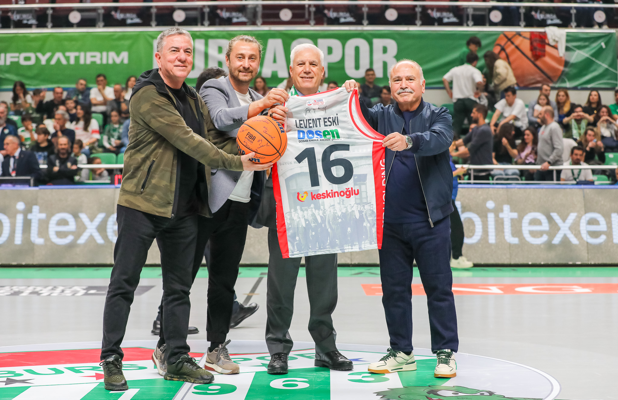 Bursaspor İnfo Yatırım, Fenerbahçe Beko maçının devre arasında bu sezon formanın sırt sponsoru olan Demirtaş Organize Sanayi Bölgesi (DOSAB) yönetim kuruluna, kulübe verdikleri destek için teşekkür etti. Bursaspor İnfo Yatırım Başkanı Sezer Sezgin, Cumhuriyet’in 100. Yıl formasını ve yeşil beyazlı oyuncuların imzaladığı Şampiyonlar Ligi topunu DOSAB Başkanı Levent Eski’ye hediye etti. Forma takdimine Büyükşehir Belediye Başkanı Mustafa Bozbey de katılarak sponsor firmayı kutladı. Sezgin ayrıca Büyükşehir Belediyespor eski başkanı ve TBF eski yöneticisi Gökhan Dinçer’e basketbol topu, eski oyuncusu Evren Büker’e forma hediye etti.