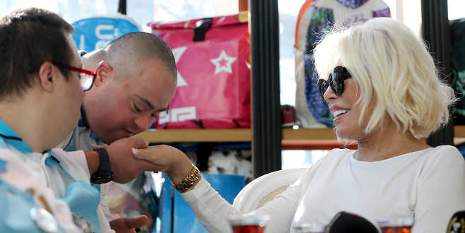 Süperstar Ajda Pekkan, İstanbul Üsküdar’daki Tebessüm Kahvesi’nde down sendromlu gençlerle bir araya geldi.