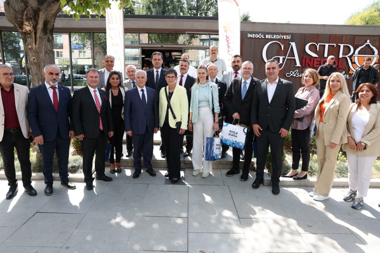 Bursa’da vatandaşların talep ve önerilerini yerinde dinleyerek çözüm üretmek amacıyla düzenlenen ‘Başkan Bozbey Burada’ projesi kapsamında İnegöl’de çeşitli temaslarda bulunan Büyükşehir Belediye Başkanı Mustafa Bozbey, Almanya Federal Cumhuriyeti Rheinland-Pfalz Eyaleti Ekonomi, Ulaştırma, Tarım ve Bağcılık Bakanlığı Devlet Sekreteri Petra Dick-Walther ve beraberindeki heyeti Gastro İnegöl’de ağırladı. Samimi bir ortamda gerçekleşen ziyarette, yerel üreticiler ile uluslararası aktörler arasında kurulacak yeni iş birlikleri ele alındı.