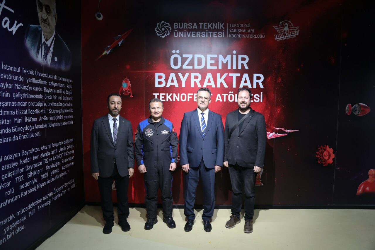 Bursa Teknik Üniversitesinde (BTÜ) öğrencilerle buluşan Türkiye’nin ilk astronotu Alper Gezeravcı, BTÜ Rektörü Prof. Dr. Naci Çağlar ile birlikte Özdemir Bayraktar TEKNOFEST Atölyesi’ni ziyaret etti. Atölyede öğrencilerin TEKNOFEST için hazırladığı ve daha önce yarışmalardan dereceyle dönen projeleri inceleyen Gezeravcı, insansız hava araçları ve savunma teknolojileri alanında geliştirilen çalışmalar hakkında öğrencilerden bilgi aldı. Atölyede yürütülen projeler hakkında öğrencilerle sohbet eden Gezeravcı, gençlerin teknoloji üretme motivasyonunun Türkiye’nin geleceği açısından son derece kıymetli olduğunu belirtti. Öğrencilerin ortaya koyduğu projelerin sadece yarışmalar için değil aynı zamanda ülkenin teknoloji ekosistemine katkı sağlayacak nitelikte olduğunu ifade etti.