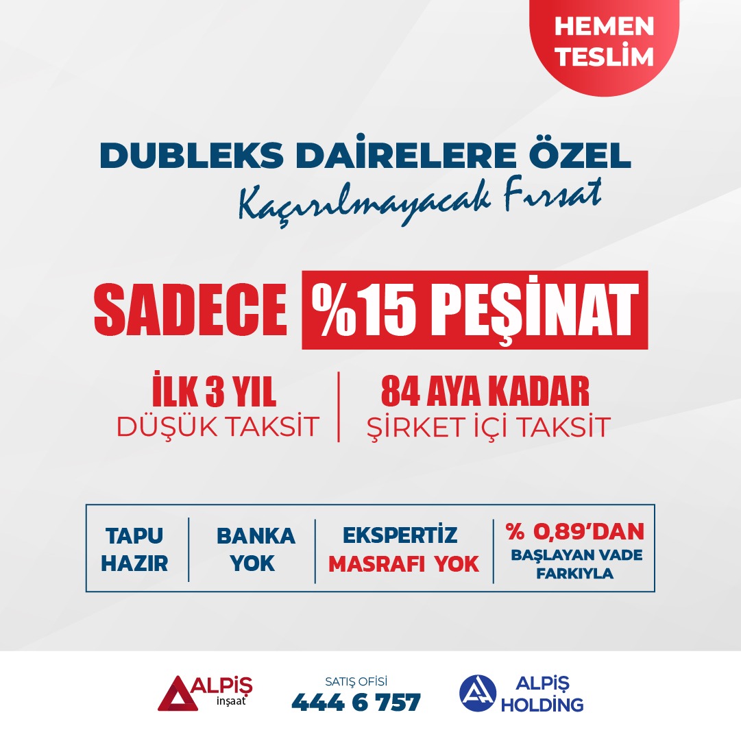 Alpiş İnşaat, Efsane Sonbahar kampanyasının ardından ticari alanlar ve dubleks daireler için başlattığı özel kampanyalarla vatandaşa ödeme kolaylığı sunuluyor.