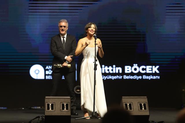 Konuşmasının ekip arkadaşlarına teşekkür ettiği kısmında Karadağlı, araya girerek ödülü Nihal Yalçın’a uzattı.