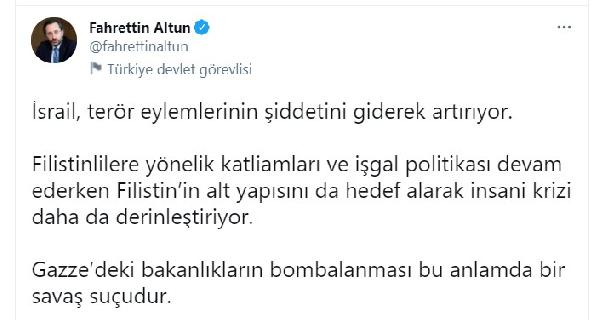 İletişim Başkanı Fahrettin Altun, Twitter hesabından yaptığı açıklamada, şu ifadeleri kullandı: