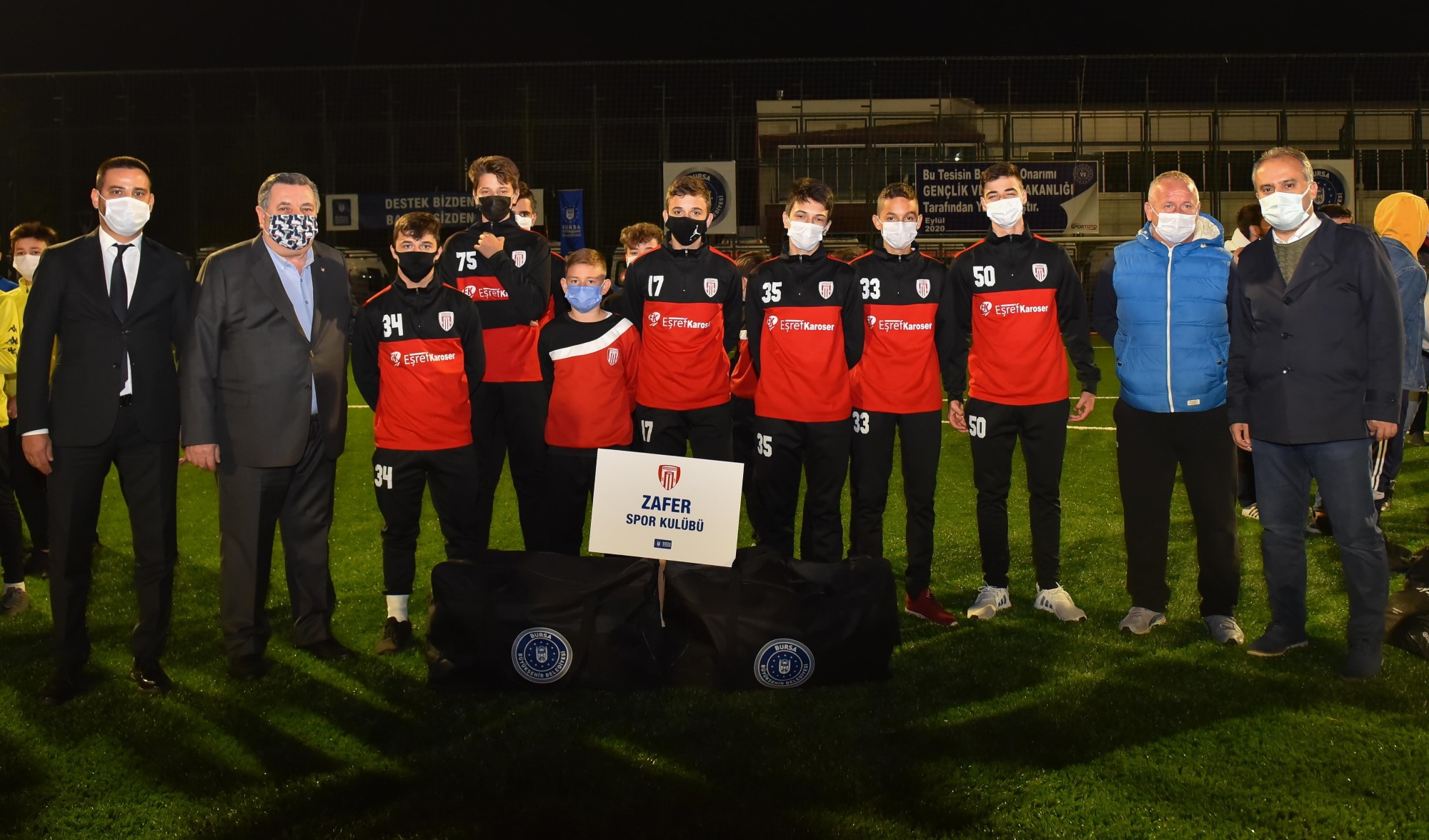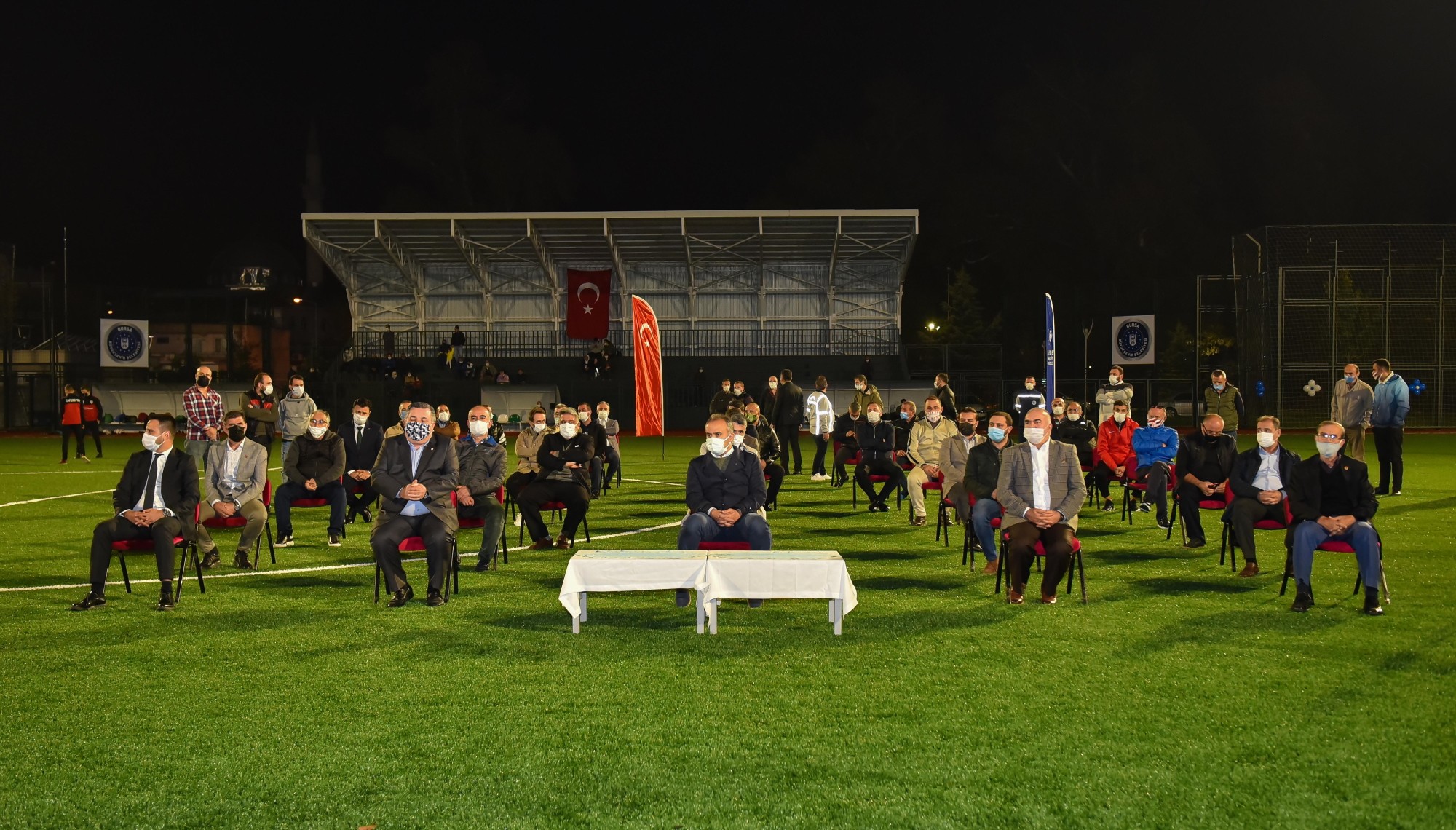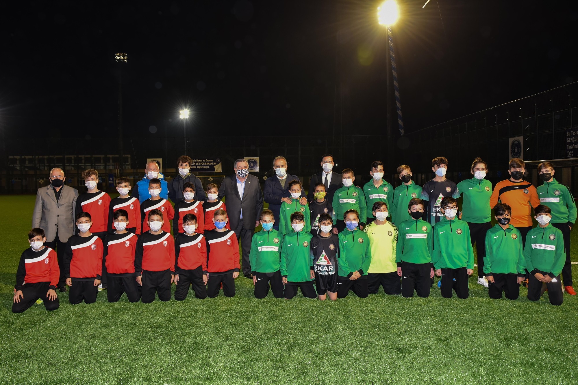 Törenin ardından Namıkkemal ve Zaferspor U11 takımları arasındaki gösteri maçının başlama vuruşu da Başkan Alinur Aktaş tarafından yapıldı. (İHA)