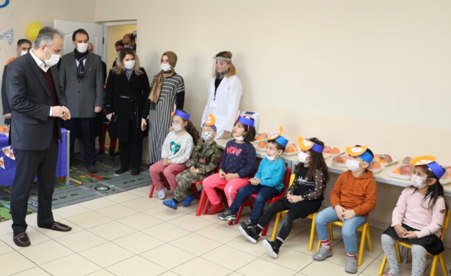 Yeni neslin daha donanımlı bireyler olarak yetişmesi amacıyla, lise ve üniversiteye hazırlık kursları, üniversite öğrencileri için gençlik merkezleri, gençleri kitap ve rahat bir çalışma ortamıyla buluşturan millet kıraathaneleri gibi projelere önem veren Büyükşehir Belediyesi’nin eğitimin ilk basamağı olan Ana Kucağı Eğitim Merkezlerinde ilk dönem karne heyecanı ile sona erdi. Eylül – Aralık arasında yüz yüze, Aralık – Ocak arasında online ve 4 Ocak’tan itibaren tekrar yüz yüze eğitimin uygulandığı 9 Ana Kucağı’ndaki 630 öğrenci karnelerine kavuştu. Büyükşehir Belediye Başkanı Alinur Aktaş da beraberindeki Bursa Milletvekili Emine Yavuz Gözgeç ile birlikte Hamitler Ana Kucağı Eğitim Merkezindeki çocukların karne heyecanına ortak oldu. Miniklerle sohbet eden Başkan Aktaş, çocukların karnelerini de Milletvekili Gözgeç ile birlikte dağıttı. Çocuklara karnelerinin yanı sına çeşitli hediyeler ve C vitamini destek paketleri verildi.