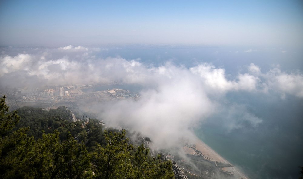 Kenti kuşbakışı gören Tünektepe’den çekilen fotoğraflar, nem bulutlarının yoğunluğunu gözler önüne serdi.Hareket ettikleri gözlenen bulutlar, görüş mesafesini de düşürdü. Şehir bulutların arasında silüet olarak görünürken, dünyaca ünlü Konyaaltı Sahili ise tamamen gözden kayboldu.