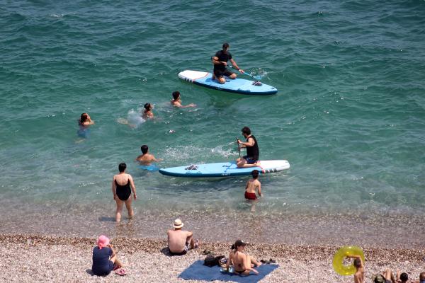 Hava sıcaklığının 26, deniz suyu sıcaklığının 25, nem oranının yüzde 68’lere ulaştığı Antalya’da, güzel havanın tadını çıkarmak isteyenler, Konyaaltı Sahili’ne akın etti.