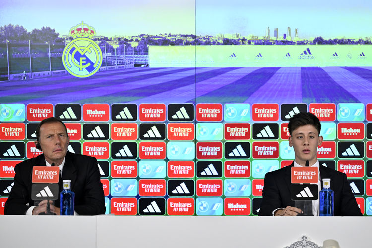 Arda Güler ve Real Madrid Dış İlişkiler Sorumlusu Emilio Butragueno “Real Madrid Sportif Şehri” adlı kulübün spor tesislerinde basın toplantısı düzenledi.