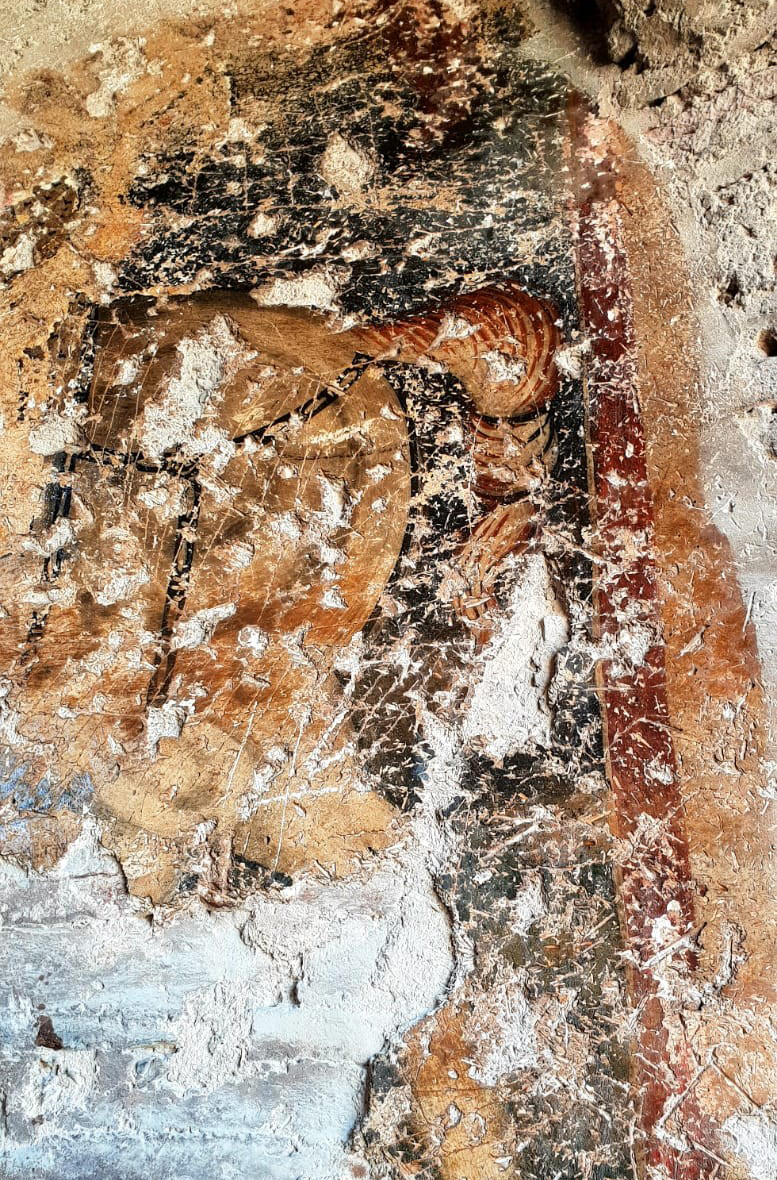 Freskte, bir aziz at üzerinde elinde mızrakla ejderi öldürürken tasvir ediliyor.