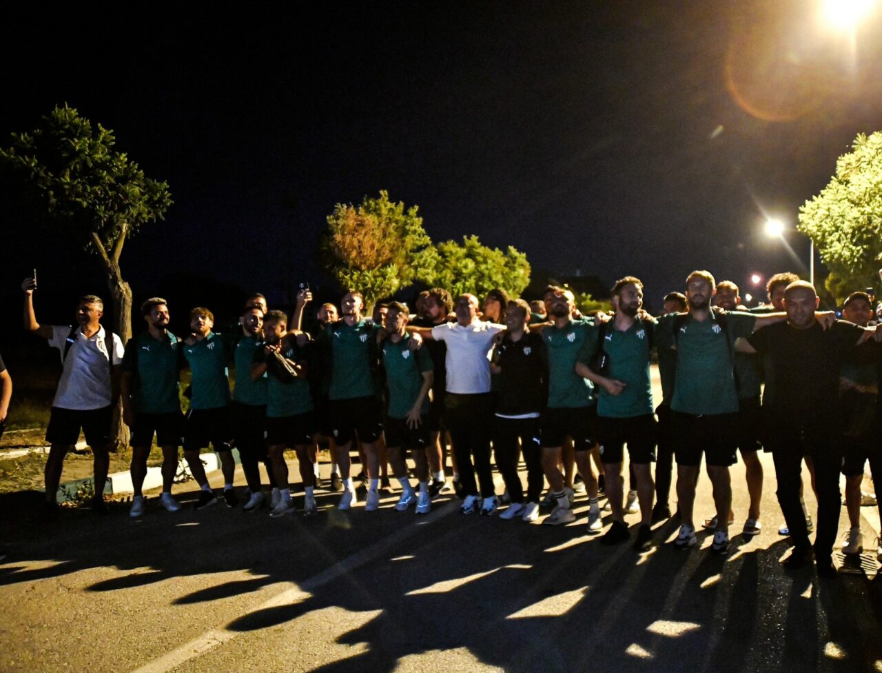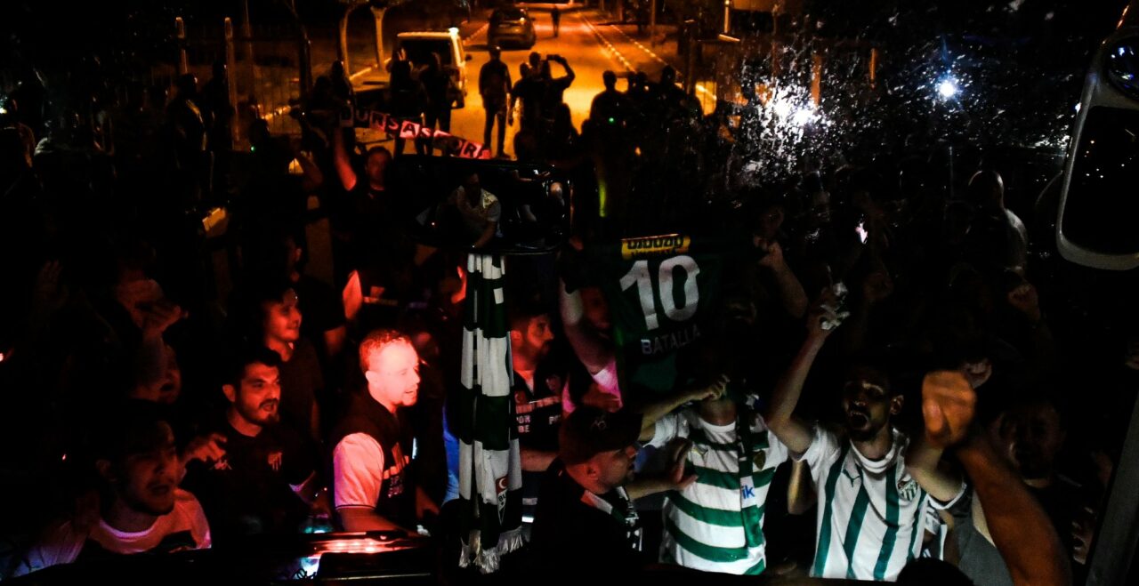 TFF 3. Lig 1. Grup ilk hafta maçında deplasmanda Düzcespor’u Ahmet İlhan Özek’in attığı gollerle 2-0 mağlup ederek lige güzel bir başlangıç yapan Bursaspor’da maç dönüşü yeşil beyazlı kafileyle taraftarlar bir araya geldi. Gece saatlerinde Bursa’ya dönen Bursasporlu teknik heyet ve futbolcular, tesis önünde toplanan yeşil beyaz sevdalılarıyla galibiyeti kutladı.