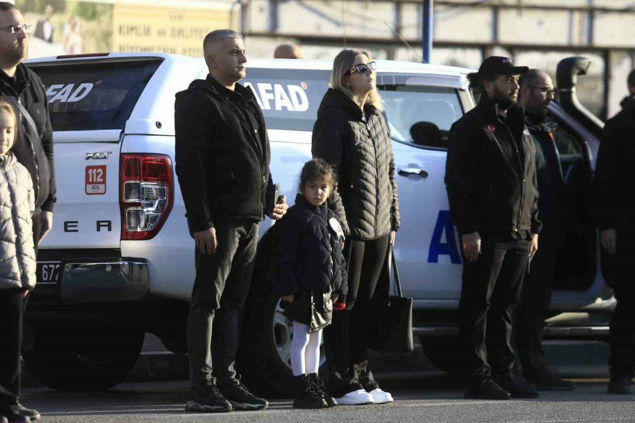 Atatürk’ün hayata gözlerini yumduğu 09.05 geçe sirenler çalmaya başlamasıyla 2 dakikalık saygı duruşunda bulunuldu.