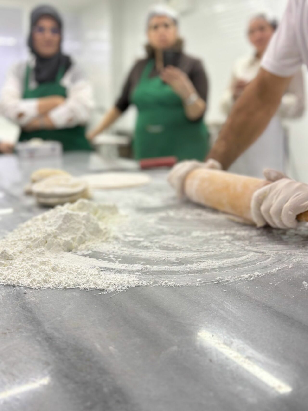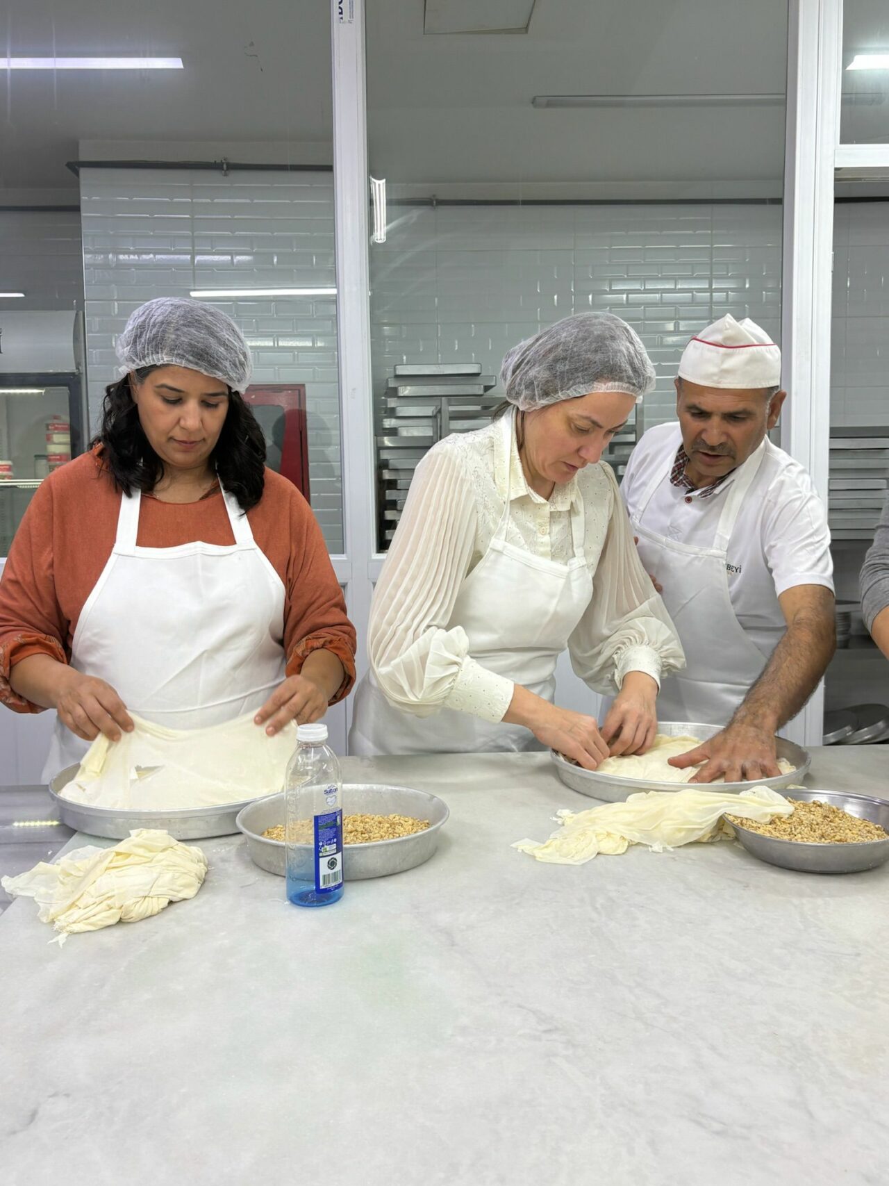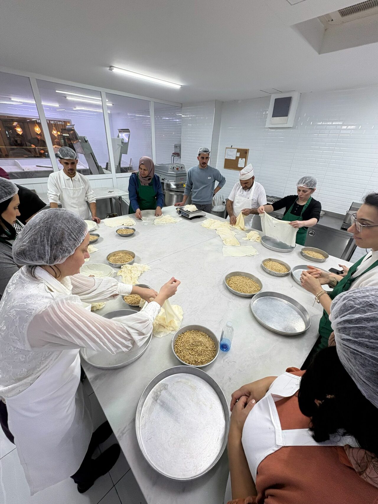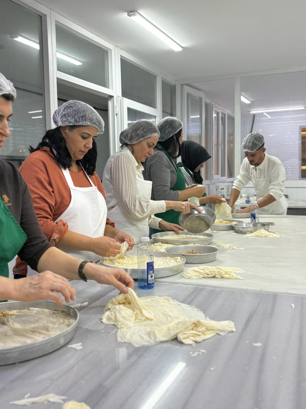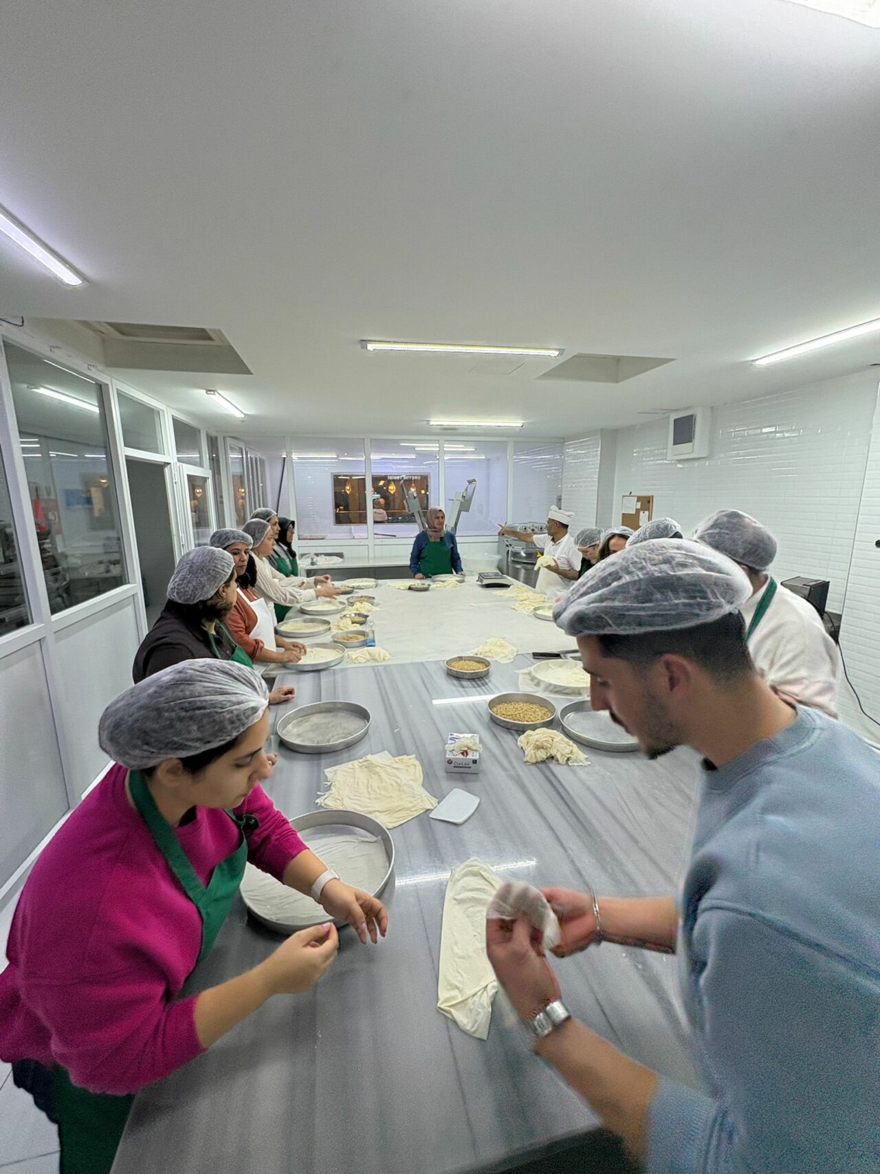 Katılımcılar; baklava hamurunun hazırlanmasından başlayarak bezelerin açılması, incecik yufkaların elde edilmesi, tepsiye yerleştirilmesi, iç harcın dengeli şekilde dağıtılması, pişirme teknikleri ve doğru şerbetleme yöntemlerine kadar tüm süreci birebir deneyimleme fırsatı buldu.