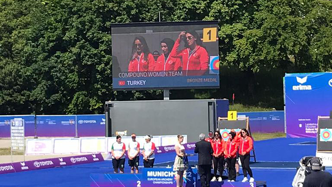 Türkiye Okçuluk Federasyonundan yapılan açıklamaya göre, Münih kentinde düzenlenen organizasyonda Yeşim Bostan Uçar, Songül Lök ve Ayşe Bera Süzer’den oluşan Makaralı Yay Kadın Milli Takımı, Estonya’yı 231-226 mağlup ederek Avrupa üçüncüsü oldu ve bronz madalya elde etti.