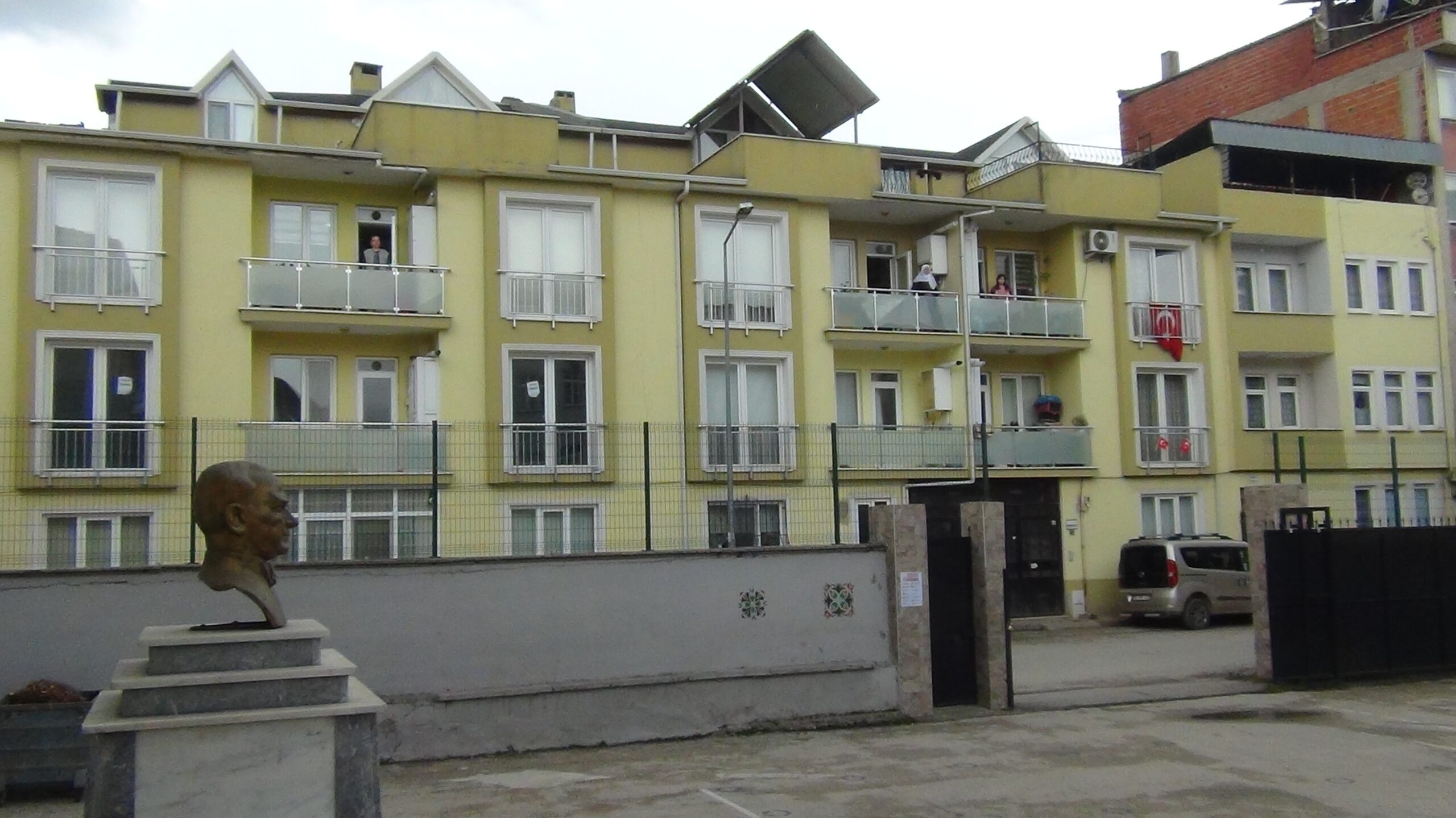 Öğrenciler ise balkonlara çıkarak onlara eşlik etti.