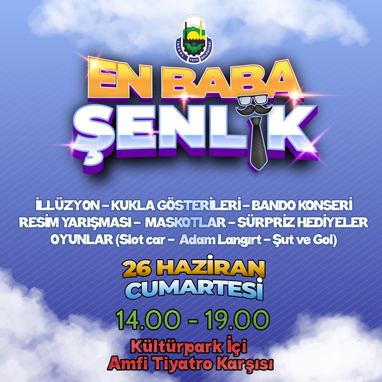 Bu yıl 20 Haziran Pazar günü kutlanan Babalar Günü’nde, İnegöl Belediyesi babalar ve çocukları için eğlence dolu bir şenlik düzenlemek için çalışma başlattı. Pazar günleri uygulanan sokağa çıkma kısıtlaması nedeniyle ilk olarak geçtiğimiz hafta Cumartesi günü yapılması planlanan, ancak hava muhalefeti nedeniyle ertelenen “En Baba Şenlik” 26 Haziran Cumartesi günü gerçekleştirilecek.