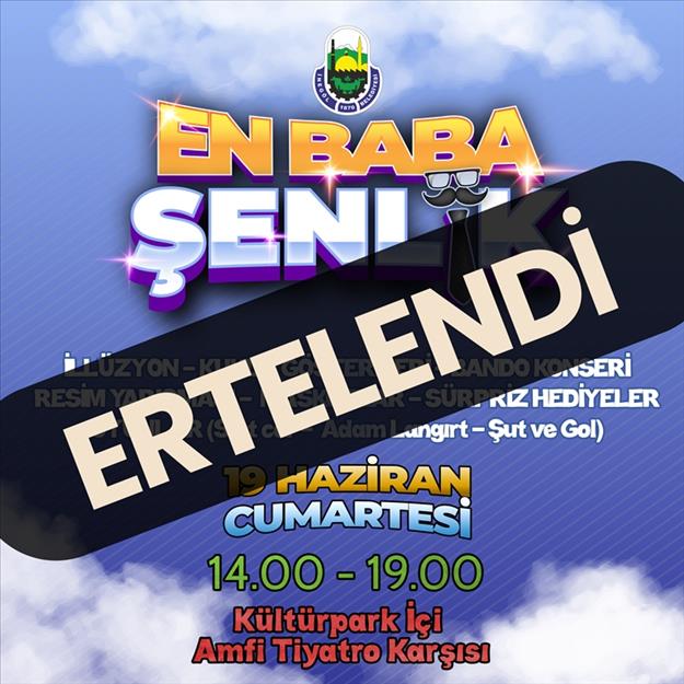 Pazar günleri uygulanan sokağa çıkma kısıtlaması nedeniyle 19 Haziran Cumartesi günü yapılması planlanan ve duyuruları yapılan “En Baba Şenlik” etkinliği, hava muhalefeti nedeniyle bir sonraki haftaya ertelendi.