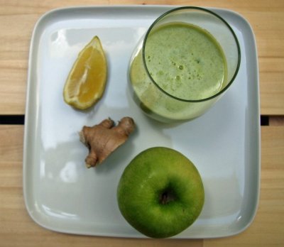 Dilediğiniz renkte taze ve olabildiğince doğal bir elma ve küçük bir miktar taze zencefilin suyunu sıkın. (Bunun için kullanabileceğiniz en ideal araç katı meyve sıkacağı olacaktır.) Ardından bir limonu taze taze sıkarak 2 yemek kaşığı limon suyu çıkarın. Malzemelerinizi ölçüp hazırladıktan sonra hepsini temiz bir bardağın içinde güzelce karıştırın ve işte bu kadar!
