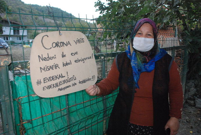 İlçeye bağlı Hocaköy’de annesi Şaziye, eşi Esat ve kızı Selma ile yaşayan 44 yaşındaki Fatma Yıldırım, enfeksiyon nedeniyle 10 gün hastanede tedavi gören kızı taburcu edildikten sonra “geçmiş olsun” ziyaretlerini salgın nedeniyle kabul etmeme kararı aldı.Yıldırım, evinin kapısına “Koronavirüs nedeniyle eve misafir kabul etmiyoruz” yazısı astı.